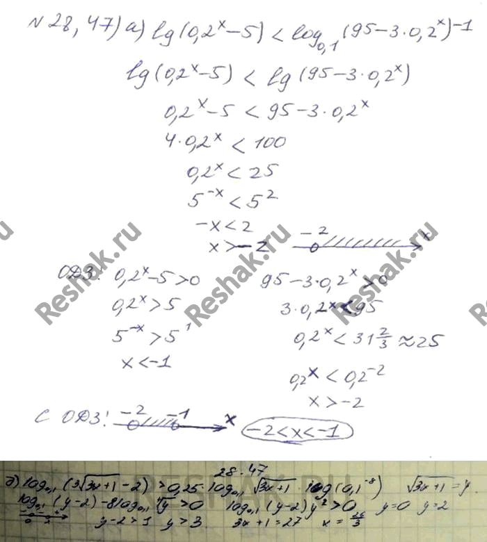28.47 а)lg(0,2x-5) < log 0,1(95-3*0,2x)^-1;
