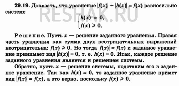 29.19 Докажите,что уравнение |f(x)|+|h(x)| = f(x) равносильно системе