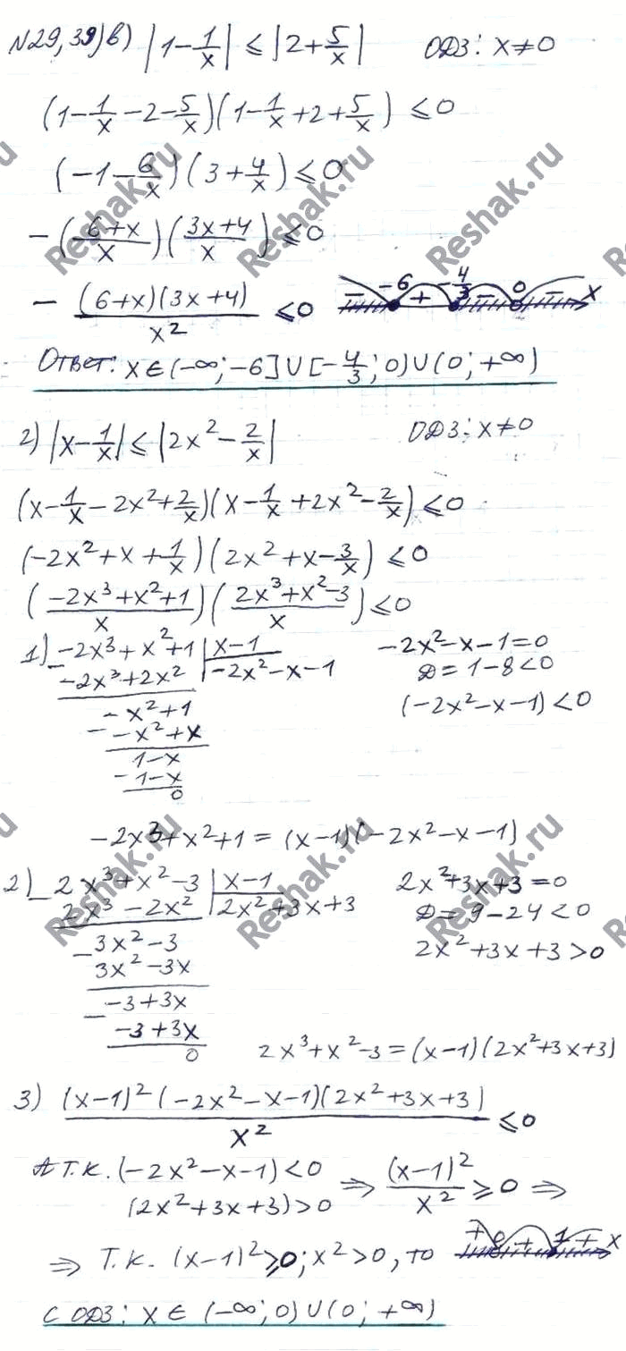 29.39 а)|(1-x)/(1+3x) > |1+x|;в)|1-1/x| меньше или равно |2+5/x|;