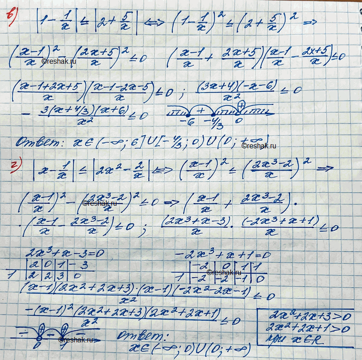 б)|(x-x2)/(1+x-3x2)| > |1-x|; г)|x-1/x| меньше или равно |2x2-2/x|