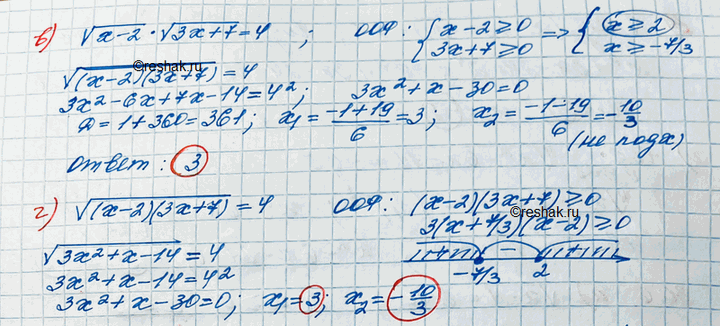 б) корень (х + 2)(3x - 2) = 4; г) корень (x - 2)(3x + 7) корень (x-2)(3x+7) = 4.