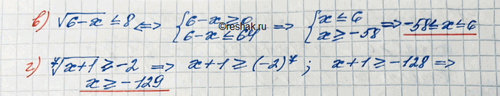 б) корень 6 степени x3-2x2+1 больше или равно -1; г) корень 7 степени x+1 больше или равно -2.