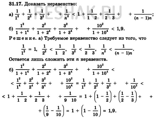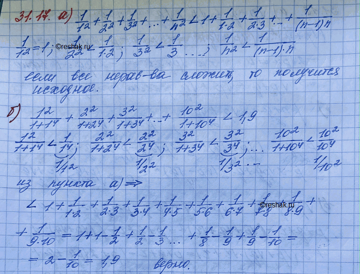 31.17 а)1/1^2+1/2^2 + 1/3^2 + ... +1/n2 < 1+1/1*2+1/2*3 + ...+1/(n-1)n;