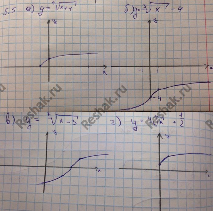 5.5. а) у = корень 4 степени х + 1; в) у = корень 7 степени х - 3;