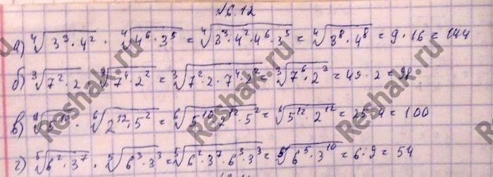 а) (корень 4 степени 3^3*4^2)*(корень 4 степени 4^6*3^5);