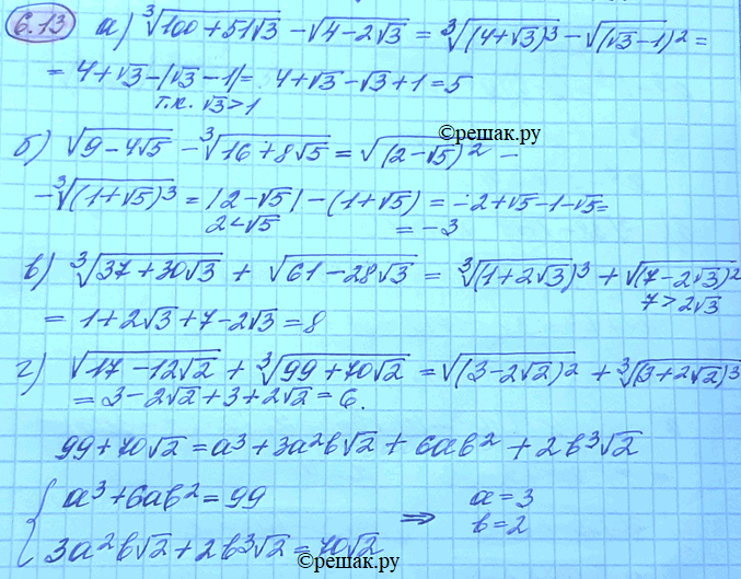 г) корень (17-12 корень 2)+ корень 3 степени (99+70 корень 2).