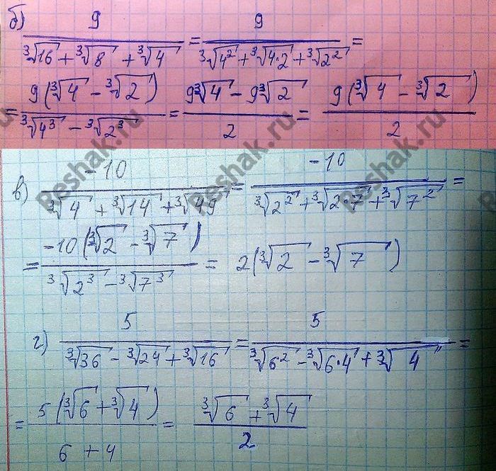 б) 9/(корень 3 степени 16 + корень 3 степени 8 + корень 3 степени 4);