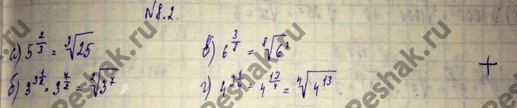 8.2. а) 5^2/3;б) 3^3 1/2;в) 6^3/8; г) 4^3 1/4