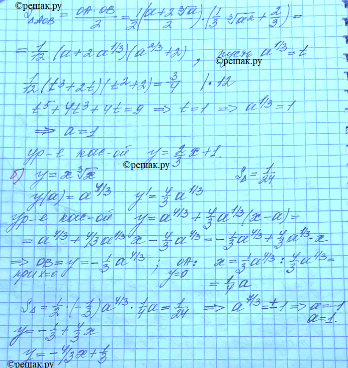 б) Составьте уравнение той касательной к графику функции у = x корень 3 степени х, которая отсекает от осей координат треугольник площадью 1/24.