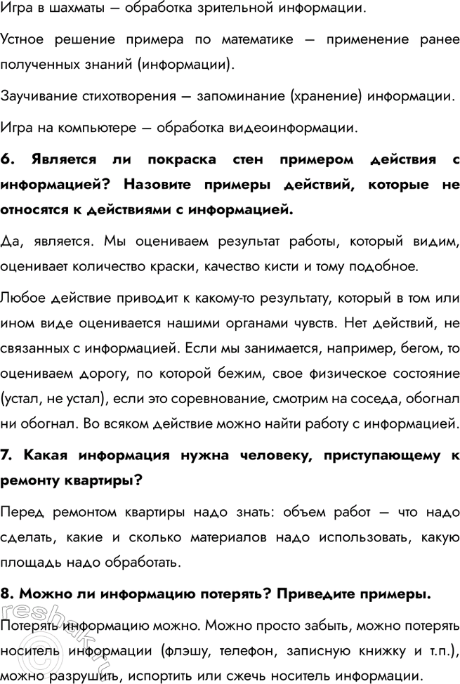 5. Являются ли перечисленные действия действиями с информацией: просмотр телепередачи; игра в шахматы; устное решение примера по математике; заучивания стихотворения; игра на компьютере? Поясните свою точку зрения.