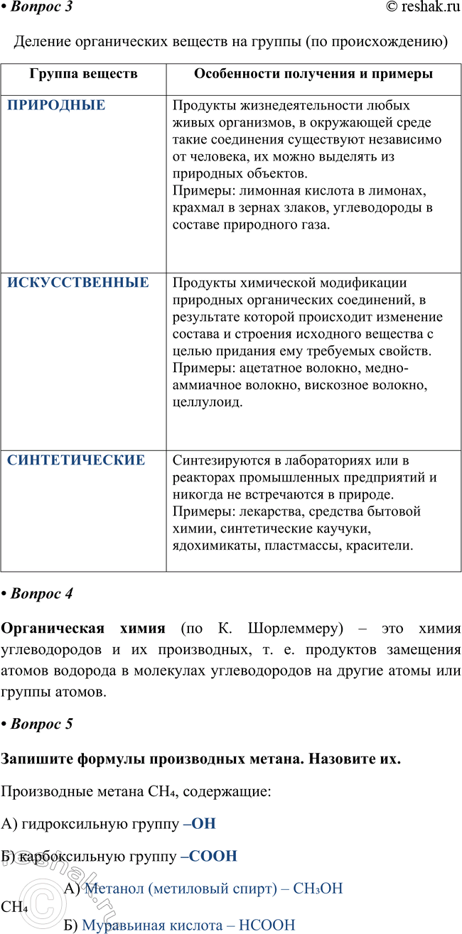 Органическая химия (по К. Шорлеммеру) – это химия углеводородов и их производных, т. е. продуктов замещения атомов водорода в молекулах углеводородов на другие атомы или группы атомов.