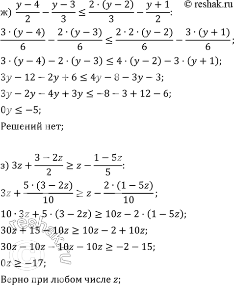ж) (y-4)/2 - (y-3)/3 ? 2(y-2)/3 - (y+1)/2;
