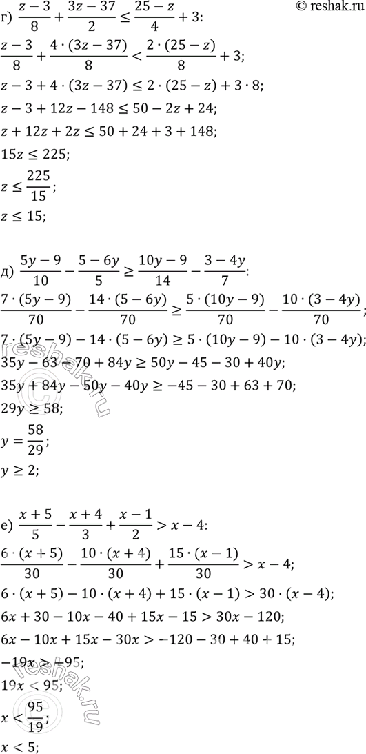 г) (z-3)/8 + (3z-37)/2 ? (25-z)/4 + 3;