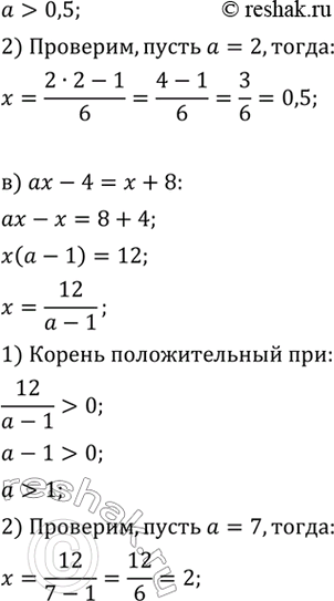 а) Зх = а + 12; б) 6(х+1) = 2a + 5; в) ах — 4 = x + 8?