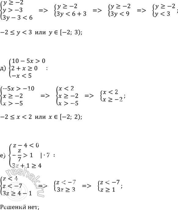 г) Система -7y?14, y/3 > -1 и 3(y-1) < 6;