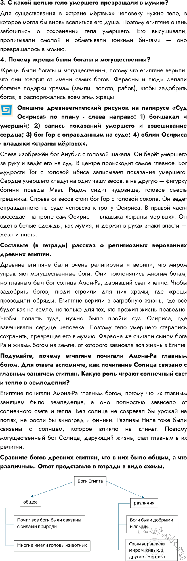 Составьте (в тетради) рассказ о религиозных верованиях древних египтян.