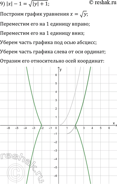 3) x=v(-y); 6) |x|=v|y|; 9) |x|-1=v(|y|+1).