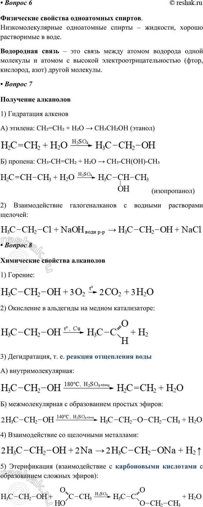 Химические свойства алканолов