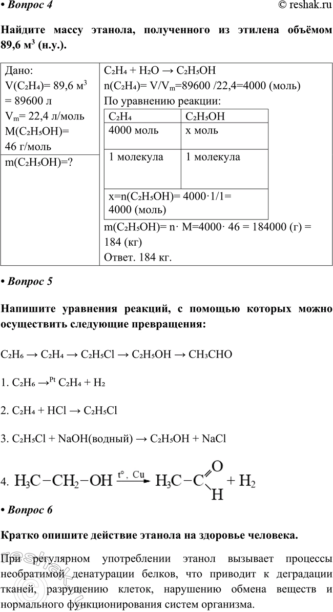 Найдите массу этанола, полученного из этилена объёмом 89,6 м3 (н.у.).