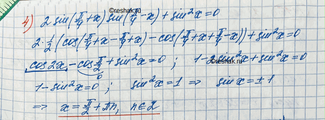 4) 2sin(пи/4 + x)sin(пи/4 - x) + sin^2 x = 0.
