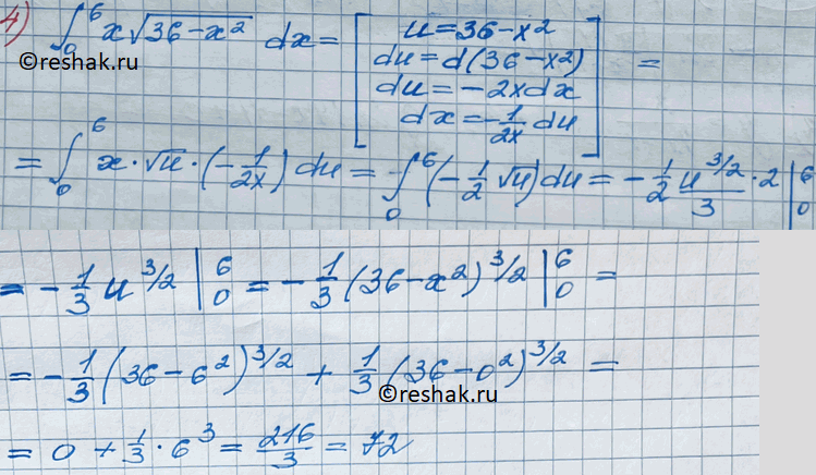 4) интеграл (0;6) x корень 36-x2 dx.