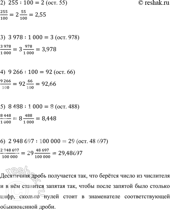 Выделите целую и дробную части числа и запишите данное число в виде десятичной дроби: