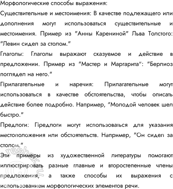 Эти примеры из художественной литературы помогают иллюстрировать разные главные и второстепенные члены предложения, а также способы их выражения с использованием морфологических элементов речи.