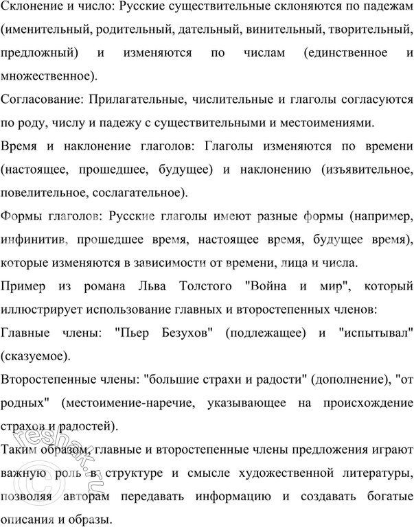 Таким образом, главные и второстепенные члены предложения играют важную роль в структуре и смысле художественной литературы, позволяя авторам передавать информацию и создавать богатые описания и образы.