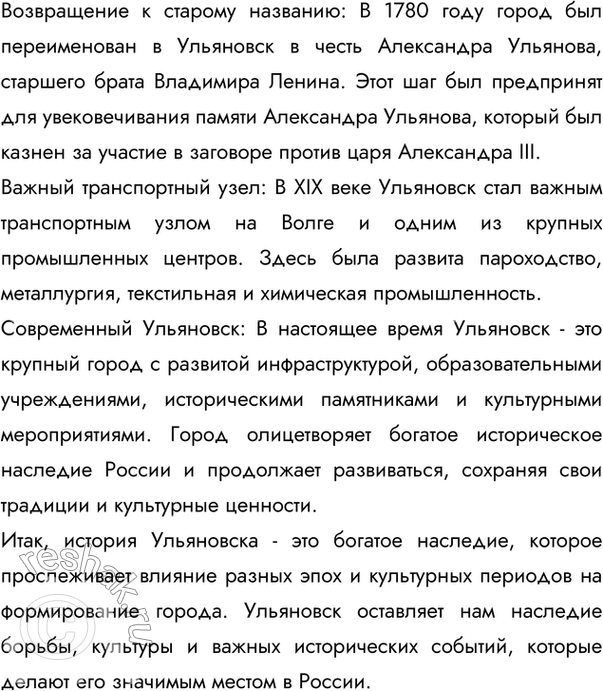 Итак, история Ульяновска - это богатое наследие, которое прослеживает влияние разных эпох и культурных периодов на формирование города. Ульяновск оставляет нам наследие борьбы, культуры и важных исторических событий, которые делают его значимым местом в России.