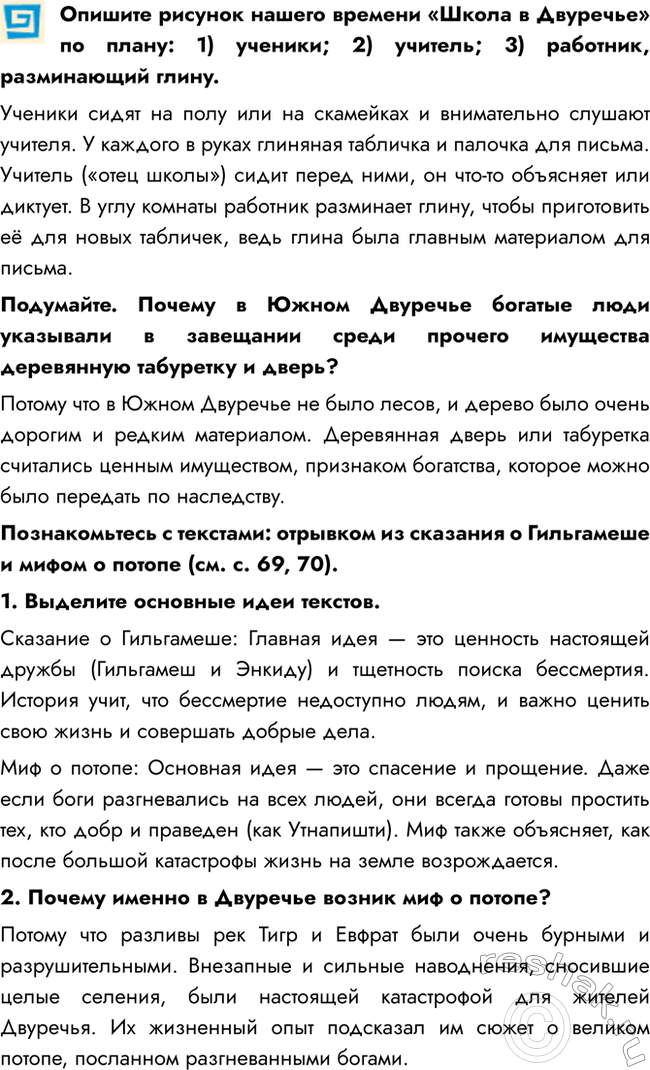 Познакомьтесь с текстами: отрывком из сказания о Гильгамеше и мифом о потопе (см. с. 69, 70).