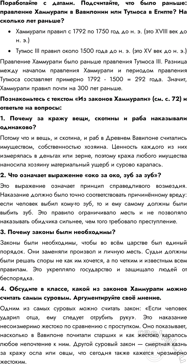 Познакомьтесь с текстом «Из законов Хаммурапи» (см. с. 72) и ответьте на вопросы: