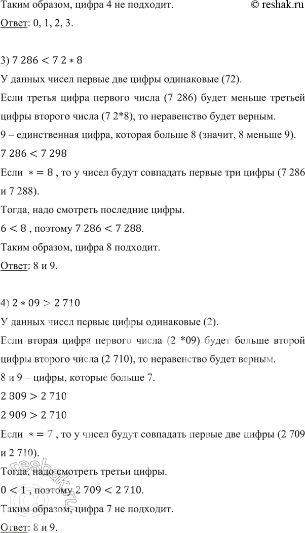1) 5 26* < 5 261; 3) 7 286 < 7 2*8;