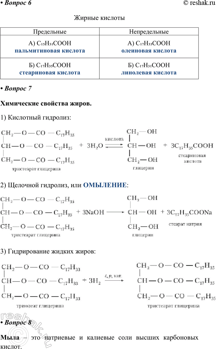 2) Щелочной гидролиз, или ОМЫЛЕНИЕ