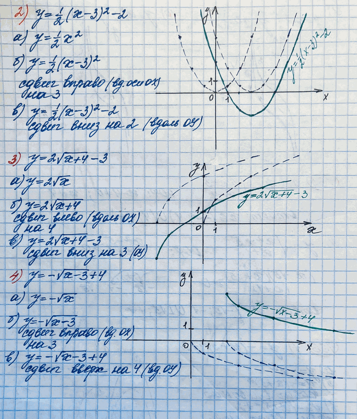 3) y = 2 корень (х + 4) - 3;