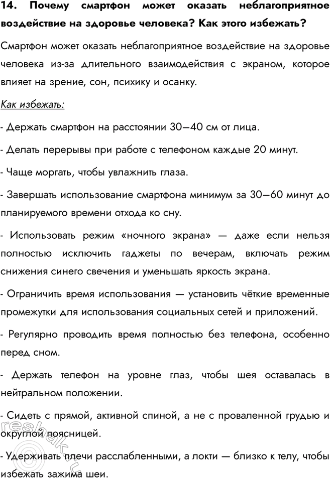 14. Почему смартфон может оказать неблагоприятное воздействие на здоровье человека? Как этого избежать?