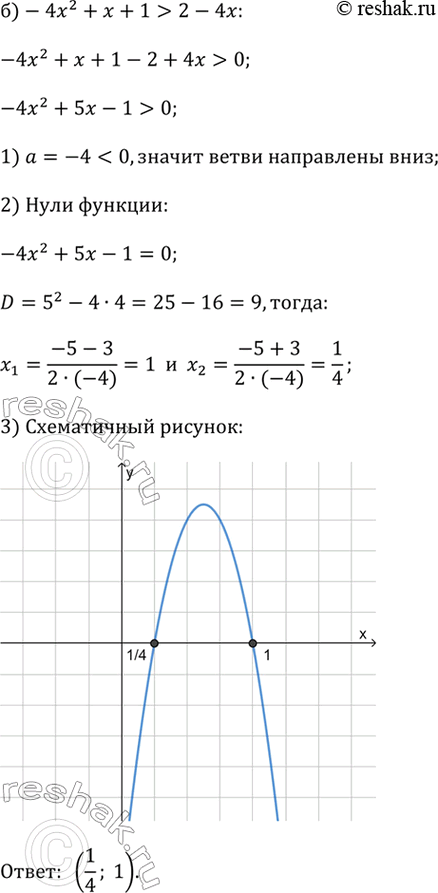 б) значения функции у = -4х^2 + х + 1 больше значений функции у = 2 - 4х.