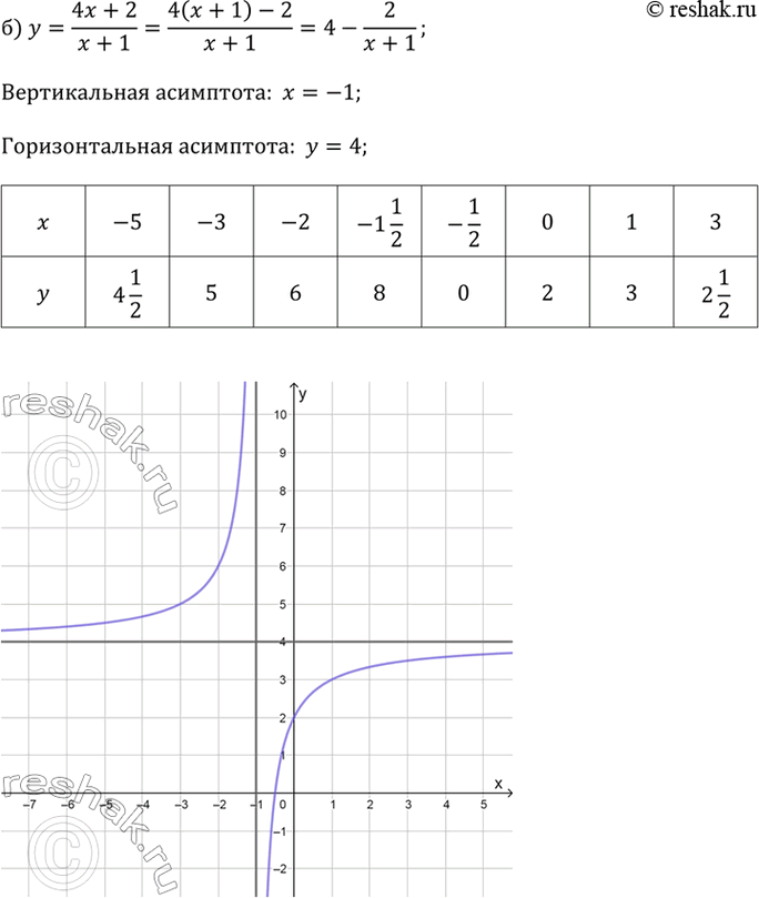 Образец. Построим график функции у = (4x - 5) / (x - 2).