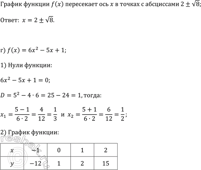 б) f(х) = -х^2 + 5х - 7; г) Дх) = 6х^2 -5х + 1.