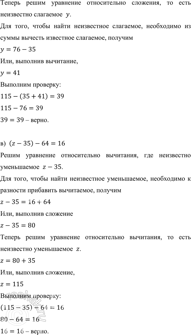 Решим уравнение относительно вычитания, где неизвестно вычитаемое 35+y.