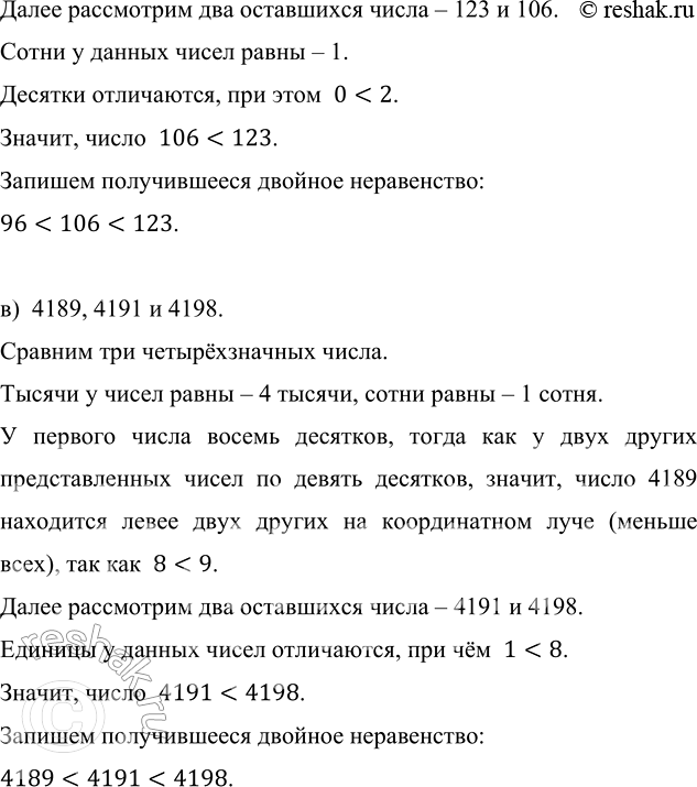а) 376,278 и 382; б) 123,96 и 106; в) 4189,4191 и 4198.