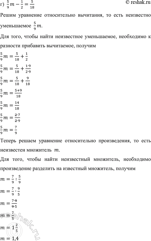 Решим уравнение относительно вычитания, то есть неизвестно уменьшаемое 5/9 m.