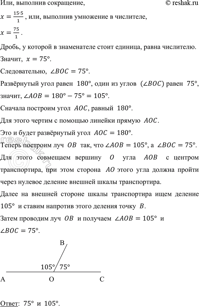 Значит, x=75°.