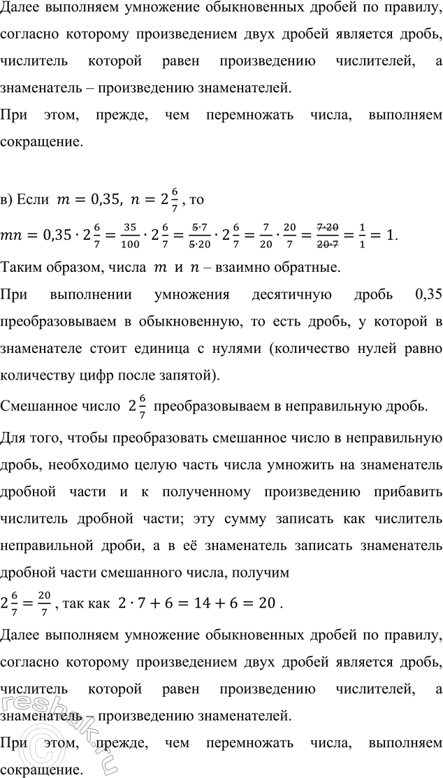а) m = 0,5, n = 2; б) m = 1,75, n = 4/7; в) m = 0,35, n = 2 6/7?