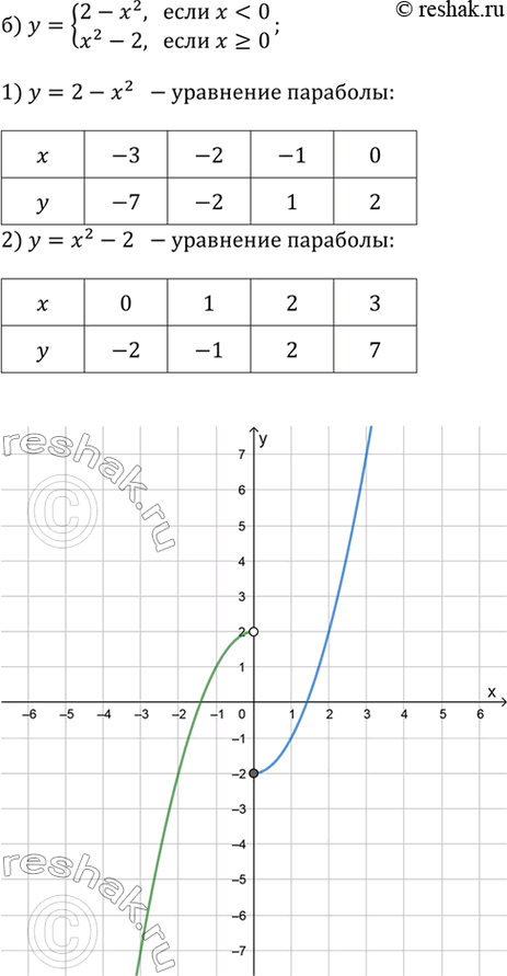 б) y = 2 - x^2, если x < 0 и y = x^2 - 2, если x ? 0;