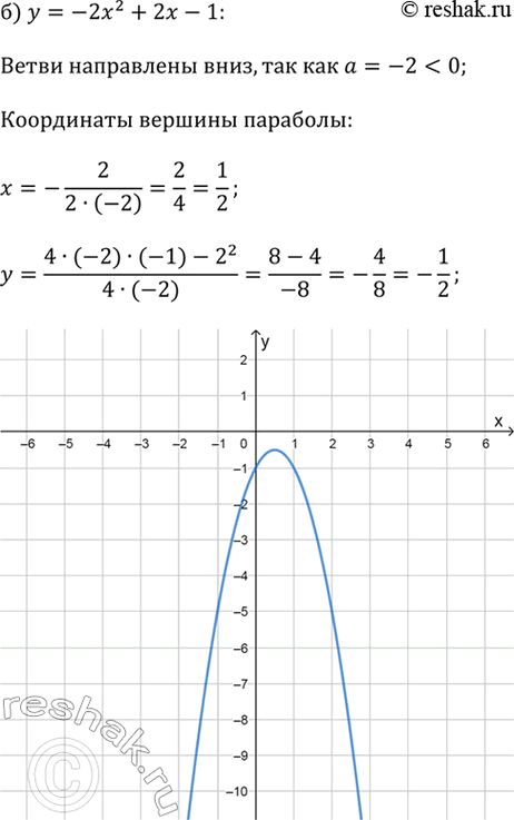 Укажите направление ветвей параболы, вычислите координаты вершины и покажите схематически расположение параболы в координатной плоскости: