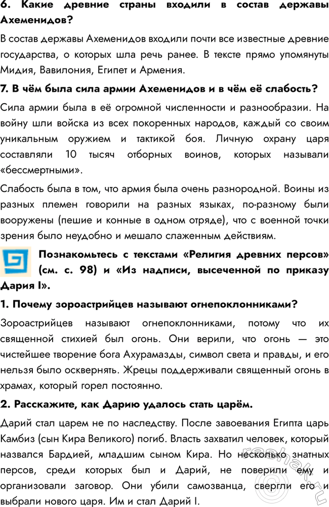 Познакомьтесь с текстами «Религия древних персов» (см. с. 98) и «Из надписи, высеченной по приказу