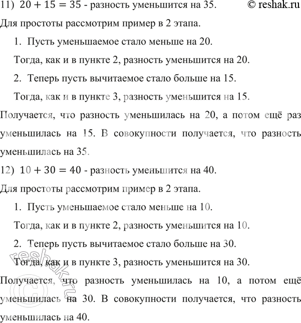 11) уменьшаемое уменьшить на 20, а вычитаемое увеличить на 15;