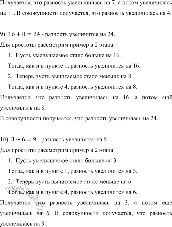 10) уменьшаемое увеличить на 3, а вычитаемое уменьшить на 6;