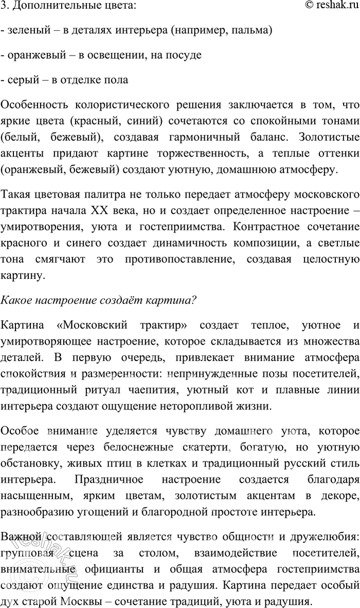 246 1 Рассмотрите картину русского художника Б. Кустодиева «Московский трактир». Что изображено на картине? Какова её композиция? Какие краски использовал художник? Какое настроение создаёт картина?