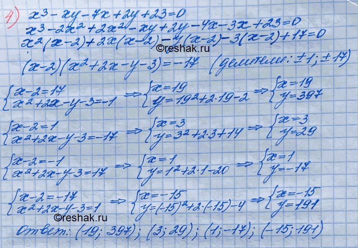 4) х3 -ху- 7х + 2у + 23 = 0.